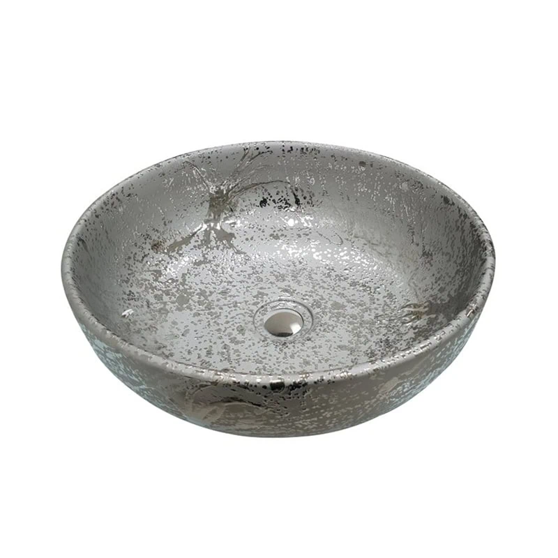 כיור חרס עגול כסף ניקל מט קוטר 41 גובה 14