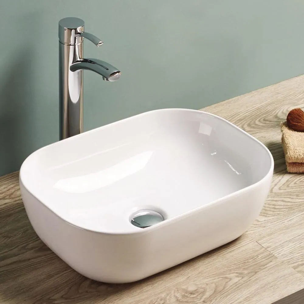 כיור מונח אובלי בעיצוב קלאסי ונקי – חרס לבן מבריק עם קווים רכים המתאימים לכל סגנון עיצוב.