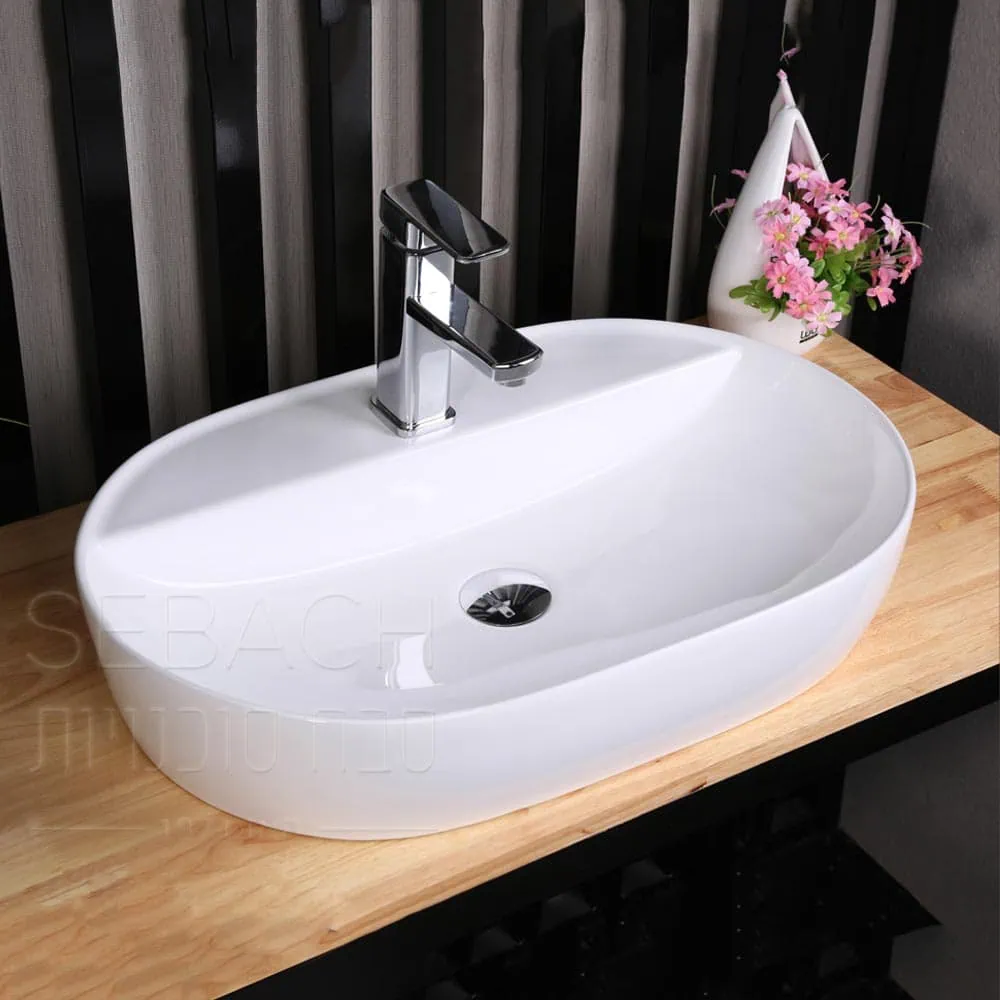 כיור מונח אובלי דגם בר מחרס איכותי בגימור לבן במידות 60x38x12 ס"מ. עיצוב אובלי דק ומתוחכם עם פרופיל נמוך במיוחד היוצר מראה מרחף ומינימליסטי. פתרון מודרני לאוהבי עיצוב נקי ועדין.