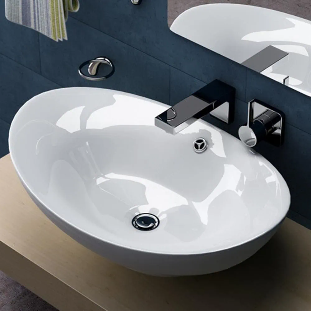 כיור מונח דגם מור בגודל 59 ס"מ עשוי חרס איכותי בגובה 20 ס"מ. עיצוב מוגבה ובולט עם נפח שימוש מרשים לחדר רחצה מעוצב.