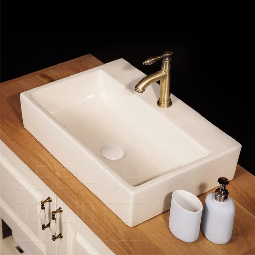 כיור מונח אובלי דגם ורד מחרס איכותי בגימור לבן במידות 51x36x12 ס"מ. עיצוב רומנטי ועדין עם פרופיל דק במיוחד היוצר מראה מרחף ומינימליסטי על משטח הארון.