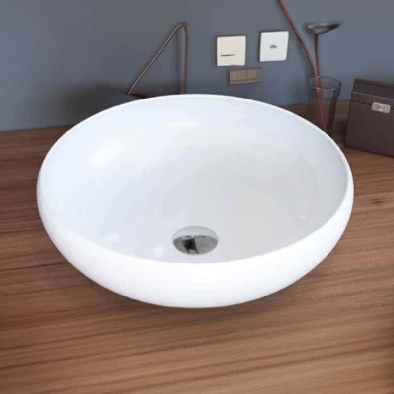 כיור מונח דגם מזור בקוטר 41 ס"מ עשוי חרס איכותי. עיצוב עגול חלק עם גימור מבריק ואיזון מושלם המתאים לעיצובים מודרניים וקלאסיים כאחד.