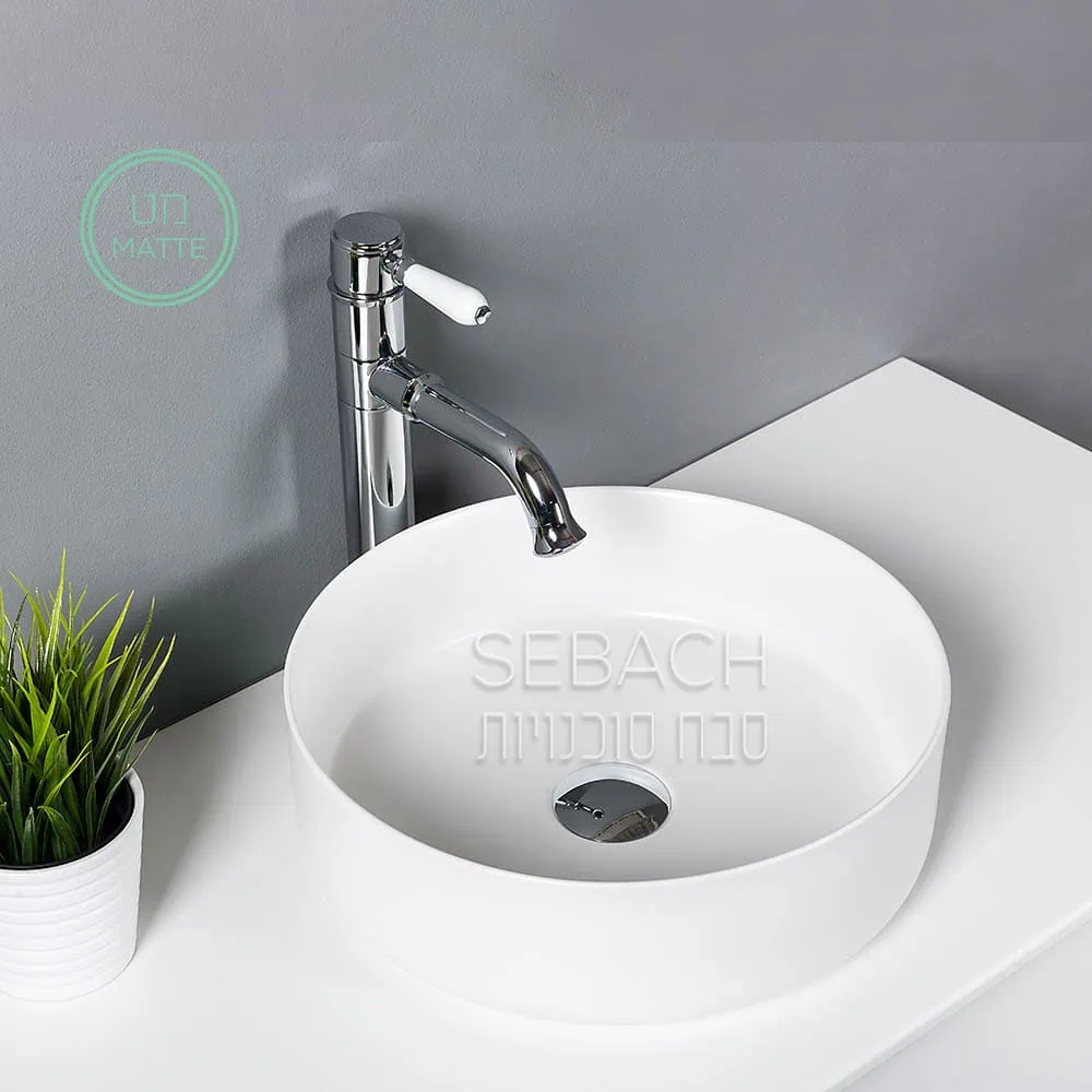 כיור מונח אובלי דגם נוגה מחרס איכותי בגימור לבן במידות 36x36x12 ס"מ. עיצוב קומפקטי וקליל עם פרופיל דק במיוחד. פתרון מושלם לחללים קטנים הזקוקים לעיצוב עדין ופונקציונלי.