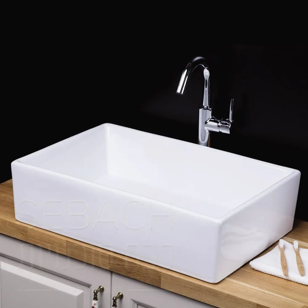 כיור מונח דגם 134083 מחרס איכותי בגימור לבן מבריק במידות 60x40x16 ס"מ. פתרון מרווח ופרקטי עם גימור מבריק המעניק ברק ונקיון מושלם. אידיאלי לשימוש משפחתי יומיומי.