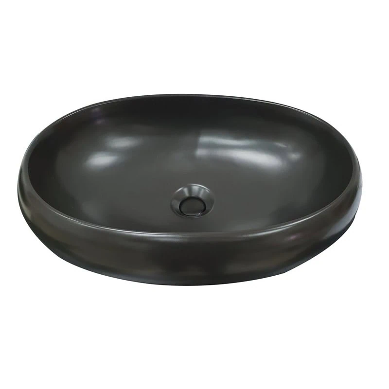 כיור מונח חרס בגימור שחור מט דרמטי – עיצוב מתוחכם ועכשווי במידות 56×36 ס"מ, ליצירת הצהרת עיצוב בולטת ומרשימה בחדר הרחצה המודרני.