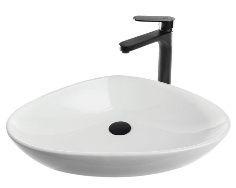 כיור מונח חרס במידות 59×39 ס"מ – עיצוב מרווח ונקי עם פרופיל דק ואלגנטי, מושלם לחללים גדולים ושימוש יומיומי נוח.