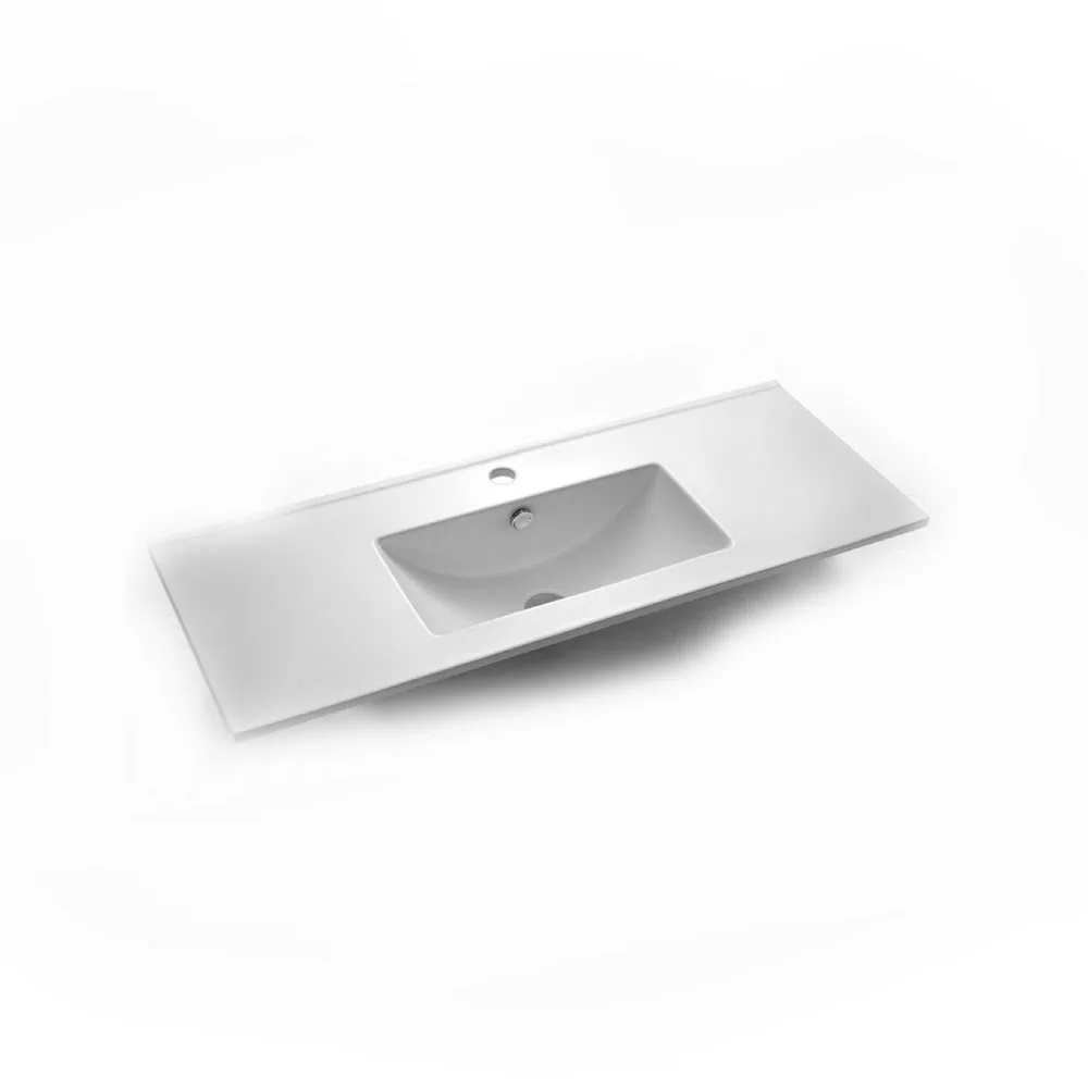 כיור משטח אינטגרלי מחרס לבן מבריק במידות 101X39 ס"מ. עיצוב קלאסי ואלגנטי עם גימור לבן מבריק יוקרתי המעניק מראה נקי ומעודן לחדר הרחצה.