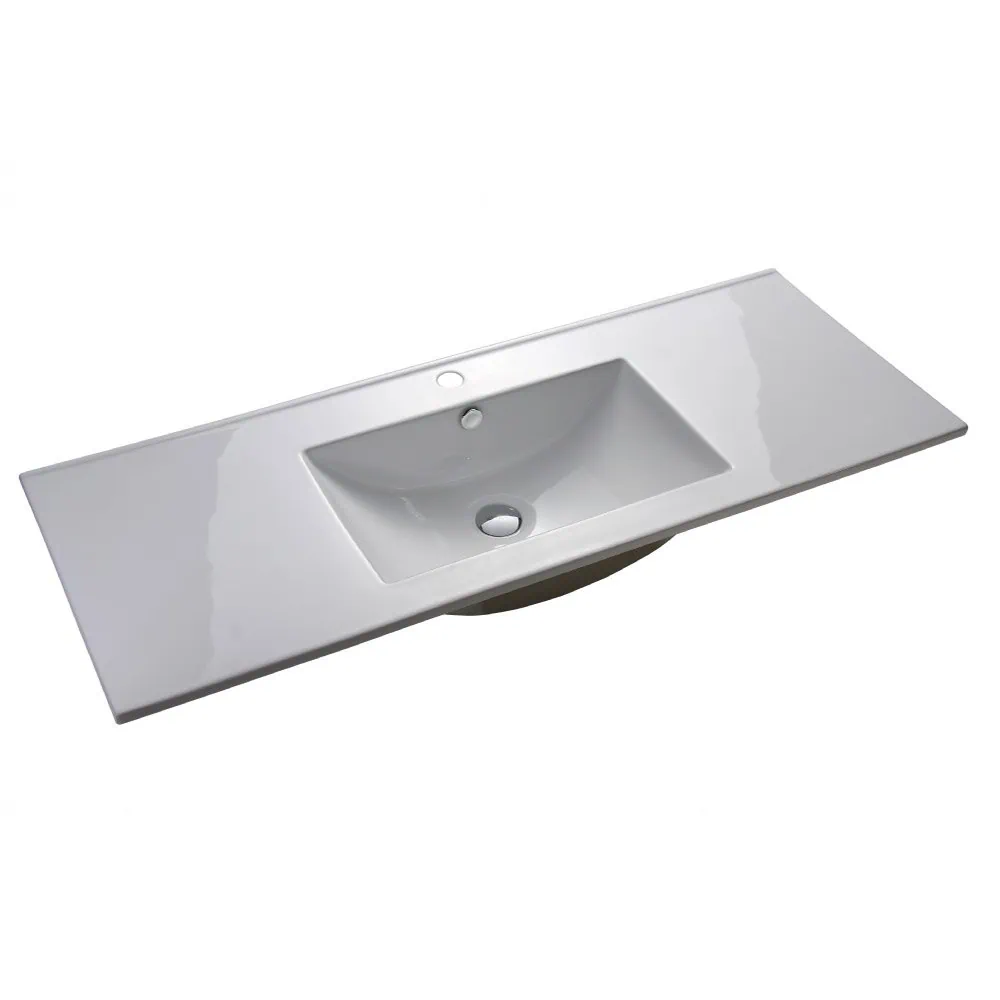 כיור משטח אינטגרלי מחרס לבן מבריק במידות 121X46 ס"מ. עיצוב קלאסי ואלגנטי עם גימור לבן מבריק יוקרתי המעניק מראה נקי ומעודן לחדר הרחצה.