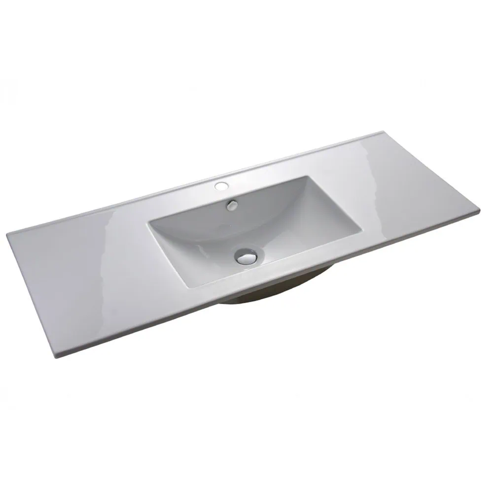 כיור משטח אינטגרלי מחרס לבן מבריק במידות 141X46 ס"מ. עיצוב קלאסי ואלגנטי עם גימור לבן מבריק יוקרתי המעניק מראה נקי ומעודן לחדר הרחצה.