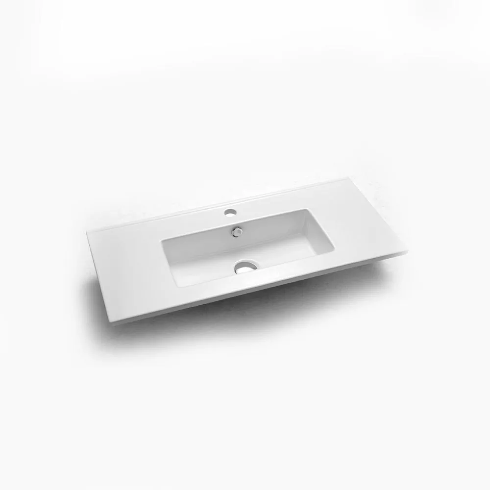 כיור משטח אינטגרלי מחרס לבן מבריק במידות 81X36 ס"מ. עיצוב קלאסי ואלגנטי עם גימור לבן מבריק יוקרתי המעניק מראה נקי ומעודן לחדר הרחצה.