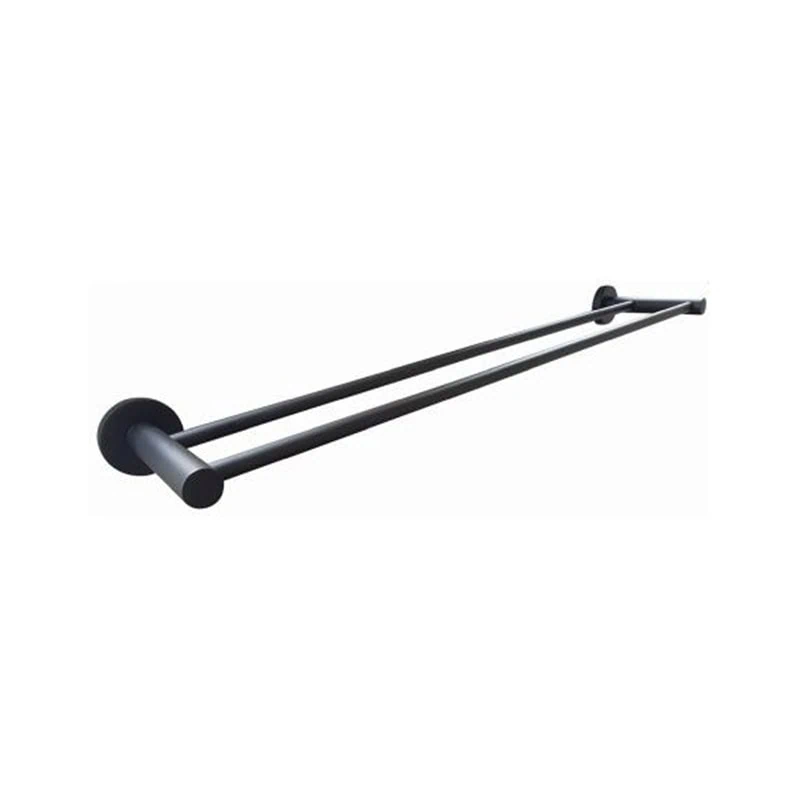 מוט כפול למגבת באורך 60 ס"מ מסדרת מיני שחור מט, במידות 64x11x5 ס"מ. עיצוב מינימליסטי בגימור שחור מט עם אפשרות קיצור לפי דרישה, מאפשר תליית שתי מגבות במקביל ומספק פתרון גמיש ומתוחכם לחדר הרחצה.