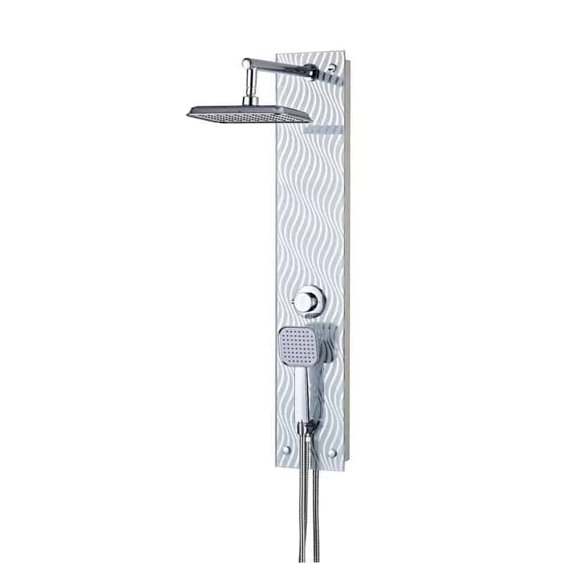 מוט פינוק קומפקטי מזכוכית אפור עם דוגמת גלים דגם 2171S במידות 65X12 ס"מ עם חיבור ישיר לנקודת מים. כולל ראש טוש מובנה ומזלף ידני לחוויית רחצה איכותית. עיצוב אמנותי מזכוכית מעוצבת למראה ייחודי ומרהיב.