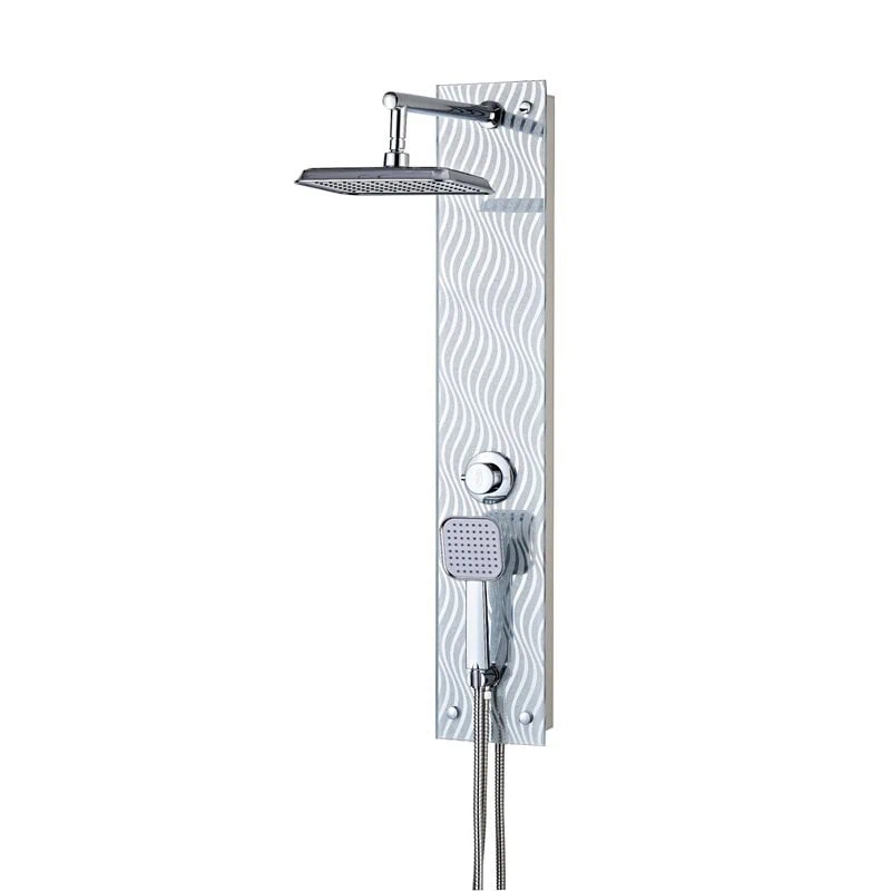 מוט פינוק יוקרתי מזכוכית אפור עם דוגמת גלים דגם 2561S במידות 100X18 ס"מ עם חיבור ישיר לנקודת מים. כולל ראש טוש מובנה ומזלף ידני לחוויית רחצה מתקדמת. עיצוב אמנותי מזכוכית מעוצבת למראה ייחודי ומרהיב.