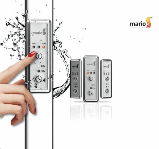 מחמם מגבות חשמלי Mario באיכות אירופאית מעולה עם גופי נירוסטה 304 בגוון כרום מבריק. כולל תרמוסטט 3 מצבים, טיימר חכם ל-3/6 שעות וחיבור כפול. הספק 120W יעיל לחימום 45-55 מעלות עם הגנה IP44 מתקדמת.