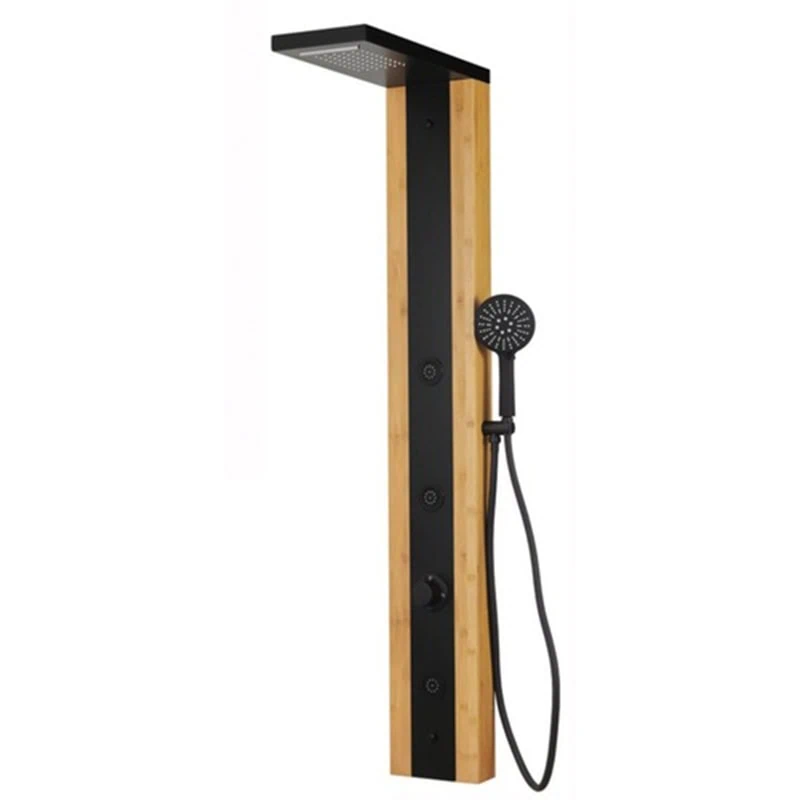 מוט פינוק יוקרתי מעץ במבוק טבעי במידות 140X20X7 ס"מ עם שילוב אלומיניום שחור מוקפד. כולל אינטרפוץ מובנה, ראש טוש, מפל מים עליון וג'טים מפנקים לחוויית רחצה אקולוגית ויוקרתית במיוחד.