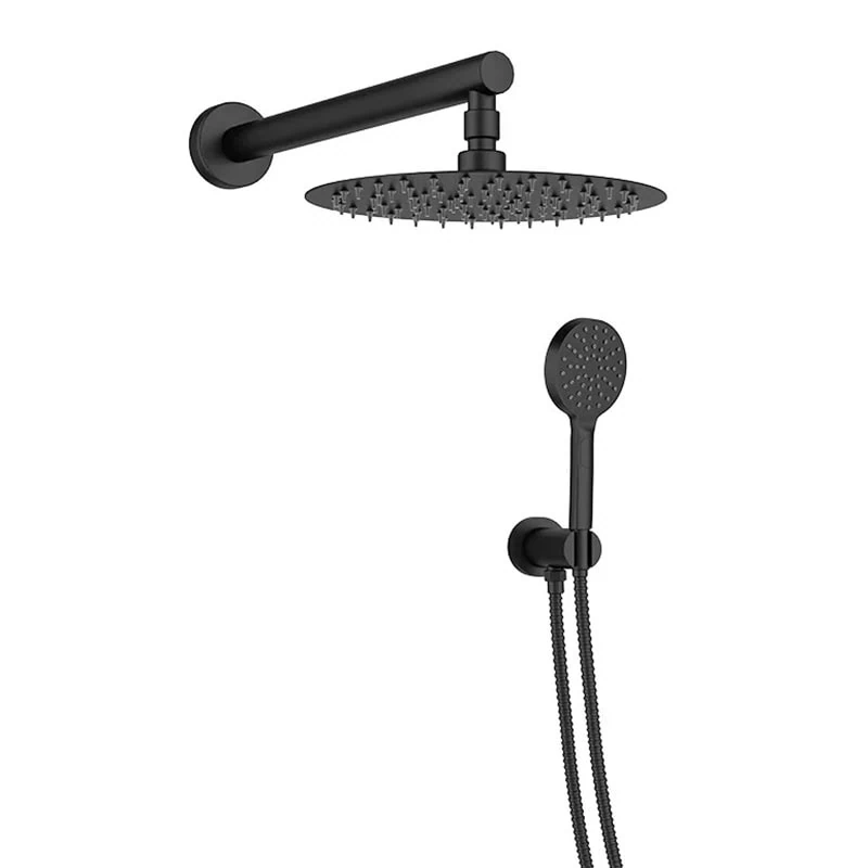 סט מקלחת מלא 5 חלקים בגימור שחור מט אלגנטי ודרמטי. כולל ראש מקלחת 25 ס"מ, מזלף 3 מצבים, נקודת מים עם תופסן, צינור 150 ס"מ וזרוע עגולה לחוויית רחצה מודרנית ומוקפדת.