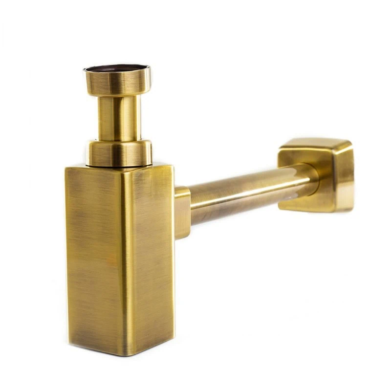 סיפון מרובע עם גימור ברונזה צהובה יוקרתי. עיצוב גיאומטרי קלאסי עם נגיעות עתיקות המעניק אלגנטיות ייחודית לחדר הרחצה.