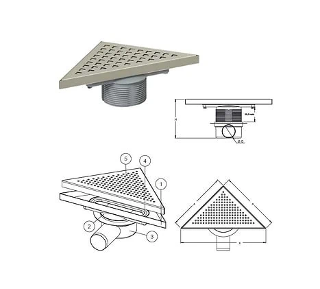 תעלת ניקוז מעוצבת TRIANGLE LEGAL CLASSIC בעיצוב משולש קלאסי עם רשת נירוסטה 304. ספיקה של 48 ליטר לדקה, יציאה 100 מ"מ ואפשרות חיבור "קומקום" 4 צול לפתרון ניקוז גיאומטרי ייחודי.