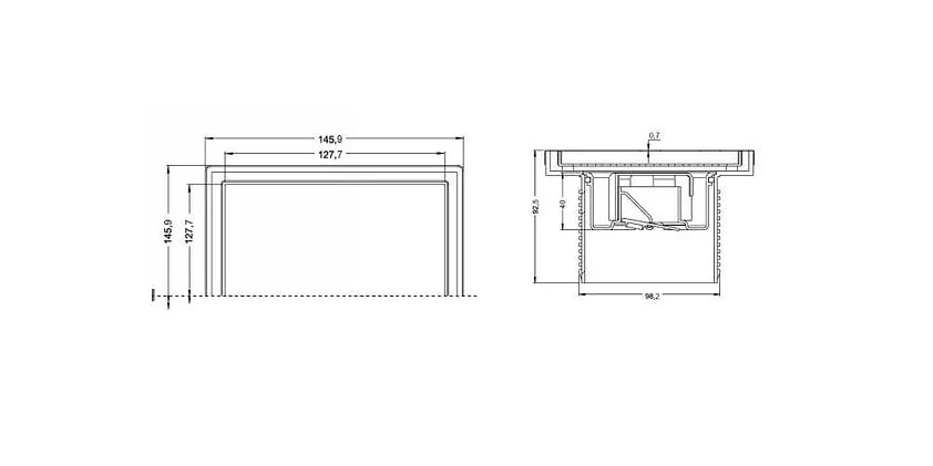 תעלת ניקוז ELIT 15X15 למקלחון עם עיצוב נירוסטה חלק ואלגנטי. יציאה 100 מ"מ ואפשרות התקנת "קומקום" 4 צול לפתרון ניקוז מעוצב ויוקרתי עם גימור נירוסטה.
